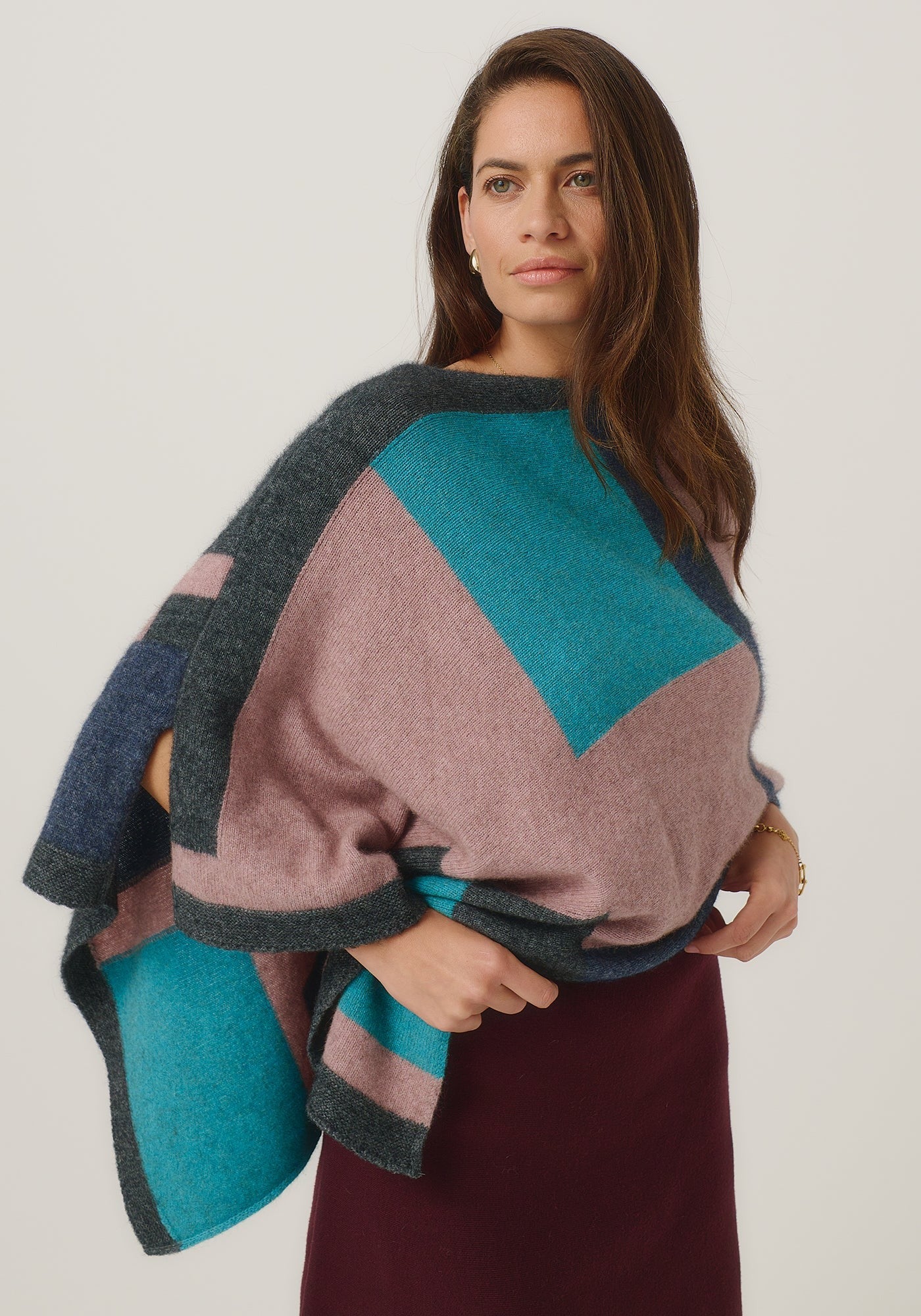 The Empress should have been called impress, as you'll be sure to turn heads in this one! With its bold colour blocking and timeless design, the Empress Poncho is statement piece you'll love.